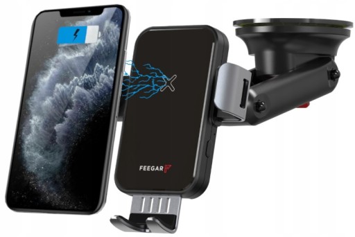 QH300 Pro marki Feegar jest to inteligentny, automatyczny uchwyt do telefonu z funkcją szybkiego ładowania indukcyjnego 15W oraz 3 rodzajami mocowania w samochodzie. Jest to Polska marka w branży elektroniki użytkowej.