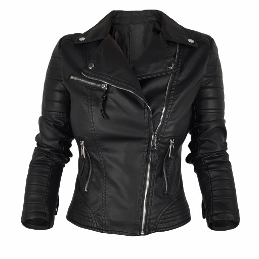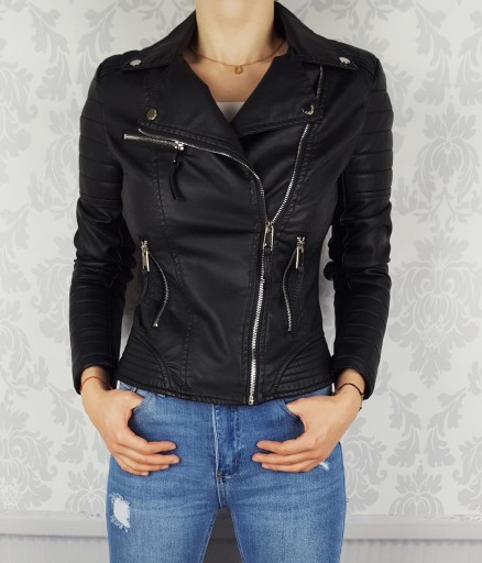 Klasyczna kurtka RAMONESKA. Model taliowany, sięgający do pasa. Uszyta z miękkiej ekoskóry doskonale imitującego naturalną skórę, półmatowa (nie świecąca i nie blado matowa). Materiał miękki (nie jest sztywny i nie piankowy). Zapinana jest na srebrny zamek . Po bokach dwie kieszonki zapinane na suwaki. Kurtka podszyta jest czarną podszewką. Można ją wykorzystać w każdej stylizacji, zarówno do klasycznych jeansów i białego T-shirtu na codzienne wyjścia, jak i do kobiecych sukienek dodając im rockowego charakteru. Jest to zdecydowany must have w każdej garderobie!