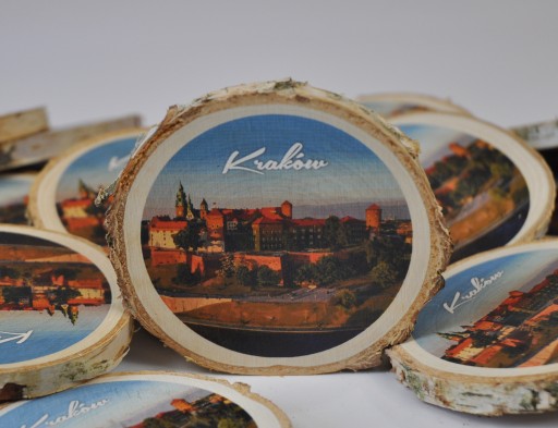 Pamiątki wykonane są ze starannie oszlifowanych plastrów brzozy o grubości 8 mm, nadruk wykonany jest nowoczesna technologią UV. Technologia ta daje gwarancję nadruku trwałego, odpornego na uszkodzenia i na szkodliwe działanie czynników atmosferycznych. Ponadto jest on bardzo estetyczny, wysokiej jakości, a kolory idealnie odwzorowane.
