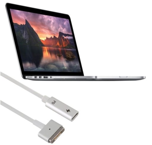 ✅Adapter pozwoli korzystać z dowolnego zasilacza (minimum 60W) poprzez kabel USB-C do wejścia MagSafe 2 T w MacBookach. Moc PD musi obsługiwać wyjście 20V 3A.