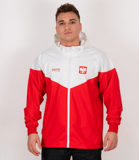 Biało-czerwona kurtka sportowa z orzełkiem na piersi, to absolutny must have każdego sympatyka reprezentacji. Wykonana z lekkiego, wytrzymałego materiału Aquaproof Sport, zapewnia 100% ochronę przed deszczem i wiatrem. Dzięki zamykanym na zamek otworom wentylacyjnym pod pachami idealnie sprawdzi się podczas treningu, a kaptur i dwie skośne kieszenie przydadzą się na każdą wycieczkę. Świetnym uzupełnieniem kurtki będzie specjalny kapelusz.