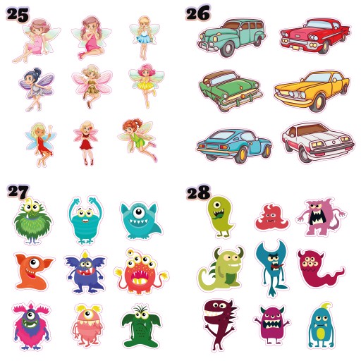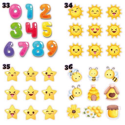 - wymiar: Największa naklejka: 6x3 cm. Najmniejsza naklejka: 2x1 cm.