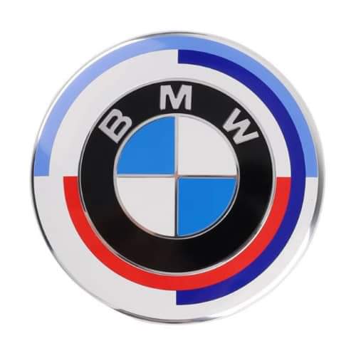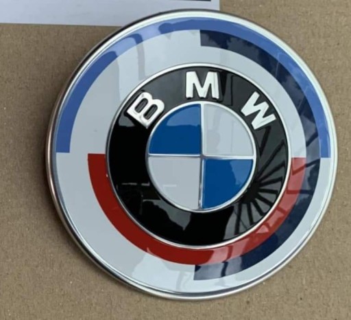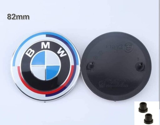 Emblemat 50 JAHRE BMW M 82mm Ø + 2 tulejki montażowe emblematu.
