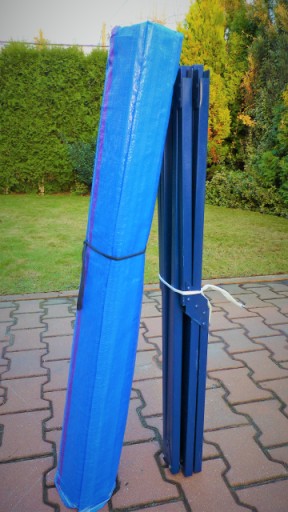 Na kompletny stół - składa się: metalowy rozkładany stelaż, plus płócienny rolowany blat, wypełniony deskami.