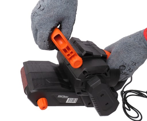 Szlifierka taśmowa marki Kraft&Dele przeznaczona jest do szlifowania i polerowania dużych płaskich powierzchni z różnego rodzaju materiałów np. do wstępnego szlifowania drzwi i płyty przed ponownym malowaniem.