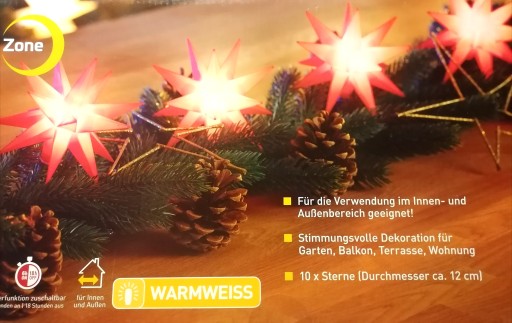 - Łańcuch świetlny LED składający się z 10 gwiazd