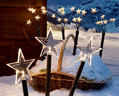 - 4 słupki z reniferem i 1 ze św. Mikołajem podświetlane diodami LED.