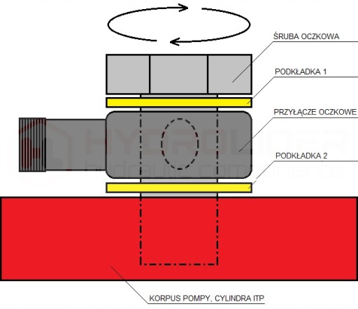Pierwsza podkładka idzie między korpusem przyłącza a łbem śruby oczkowej. Druga przychodzi między korpusem np. pompy lub cylindra a korpusem przyłącza (zdj.).