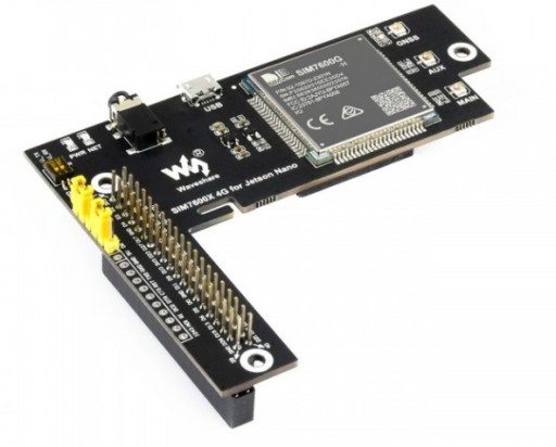 Moduł komunikacji 4G/3G/2G i pozycjonowania GNSS przeznaczony do współpracy z zestawem NVIDIA Jetson Nano. Obsługuje standard LTE CAT4 i umożliwia pobieranie danych z prędkością do 150 Mb/s. Moduł pozwala na wykonywanie połączeń telefonicznych, obsługę SMS, MMS, poczty, TCP, UDP, DTMF, HTTP, FTP. Ma wsparcie dla pozycjonowania stacji bazowych GPS, BeiDou, Glonass, LBS. Na płytce umieszczono 40-pinowe złącze do podłączenia modułu do Jetson Nano oraz złącze audio 3,5 mm, gniazdo kart SIM, złącze USB do komunikacji za pomocą komend AT oraz złącza do podłączenia anteny. Pełna dokumentacja dostępna jest na stronie Wiki produktu.