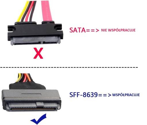 ✅Złącze SFF-8639 i SFF-8643 mimo podobieństwa do SATA 22Pin jest innym złączem. Adapter NIE pasuje do gniazda SATA 22 Pin!