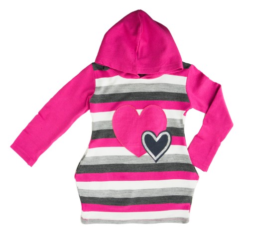 - Na zdjęciu Lalka w rozmiarze 116 ubrana w tunikę o rozmiarze 128