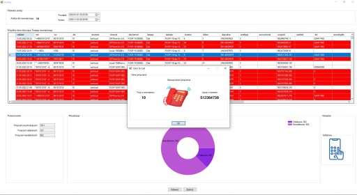 Moduł analizy! Czyli czas na podsumowanie! Wystarczy wybrać okres w jakim chcesz przeanalizować dane dotyczące twojego numeru wewnętrznego. Program wyświetla takie informacje jak pełna lista połączeń wychodzących, oraz przychodzących z podziałem na połączenia odebrane i nieodebrane, liczby zaś prezentuje w postaci czytelnego wykresu.