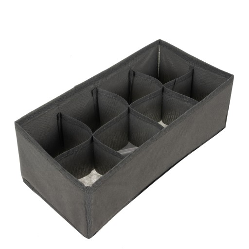 - SPECYFIKACJA - kolor: szary; materiał: włóknina; usztywniane: ścianki; składany: tak; wymiary: organizer na 24 przegródki: 33 x 33 x 10 cm; organizer na 8 przegródek: 28 x 14 x 10 cm; organizer na 7 przegródek: 33 x 33 x 10 cm organizer na 6 przegródek: 33 x 14 x 10 cm; waga: 534 g; waga w opakowaniu: 539 g.