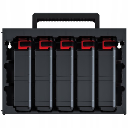 System TAGER CASE jest oferowany w zestawie z pięcioma pionowo ułożonymi organizerami serii tager w rozmiarze 30x25cm lub trzema poziomo ułożonymi organizerami serii tager w rozmiarze 40x30cm. System posiada blokadę przed wypadaniem oranizerów oraz otwory montażowe zapewniające szybki i łatwy montaż na ścianie.