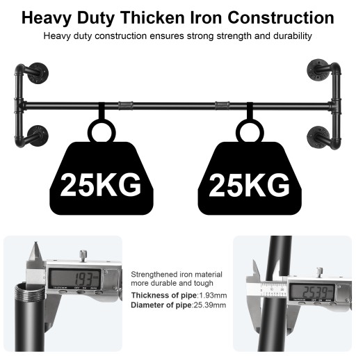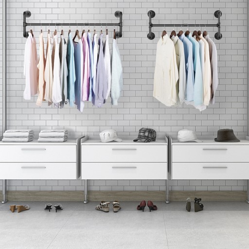 Zajmujący mało miejsca wieszak na ubrania przemysłowe. Dzięki długości 42,9 cala i konstrukcji naściennej może pomieścić wiele ubrań i akcesoriów o wadze do 110 funtów. Pomaga uporządkować ubrania w szafie lub niechlujne szaliki w szufladzie.