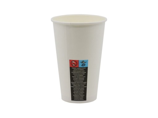Kubki zawierają nadruk dyrektywy SUP, widoczny na ostatnim zdjęciu.