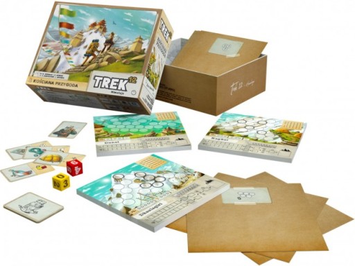 Trek 12 to gra typu roll-and-write, która oferuje rosnące poziomy trudności. Naszym celem jest zdobycie jak największej liczby punktów poprzez sprytnie rozmieszczanie wartości liczbowych na arkuszy trasy górskiej.