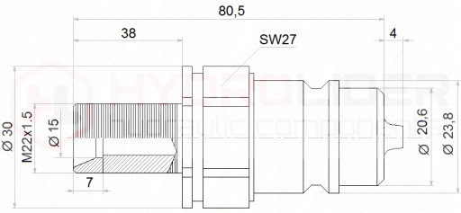Gwint od strony przewodu: zewnętrzny metryczny 22x1.5