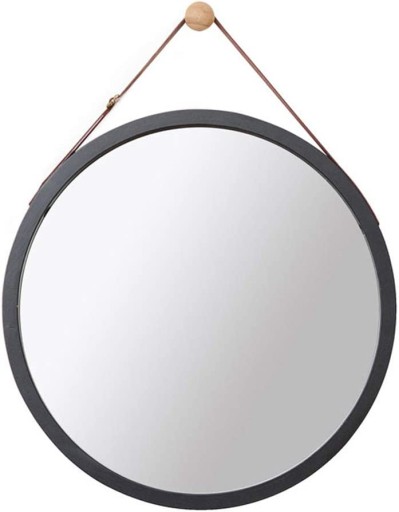 LUSTRO ŚCIENNE METALOWE NA PASKU W METALOWEJ RAMIE OKRĄGŁE CZARNE 45CM LOFT