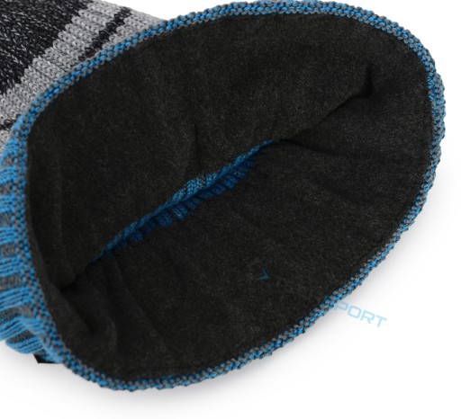 Od środka na wysokości ok 7cm przy uszach czapka podszyta jest dodatkowo bardzo przyjemnym w dotyku micropolarem - dodatkowo chroniącym przed utratą ciepła i zimnem (zdjęcie poglądowe z innego koloru):