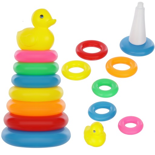 PIRAMIDKA KACZUSZKA / KACZKA Z OBRĘCZAMI / NAUKA POPRZEZ ZABAWĘ / LOGICZNE MYŚLENIE CIERPLIWOŚĆ / 7 KOLOROWYCH KÓŁEK