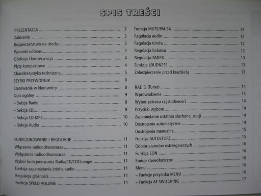 Spis treści oraz zdjęcie radioodtwarzacza patrz zdjęcia powyżej