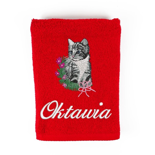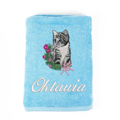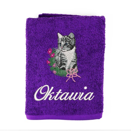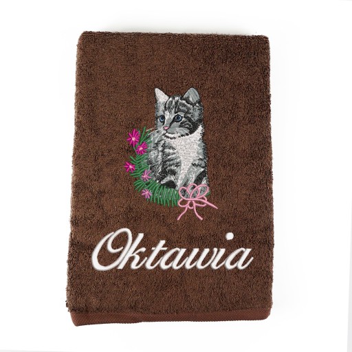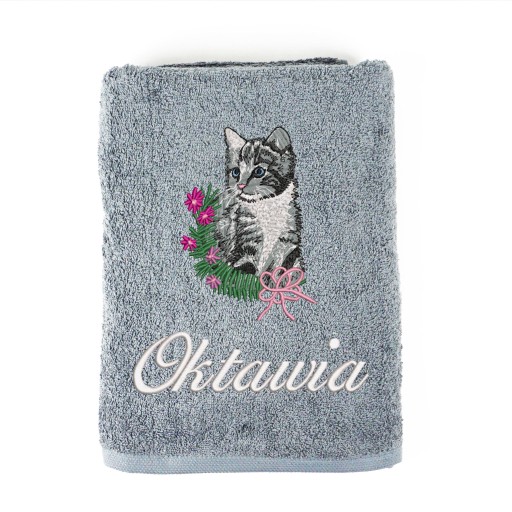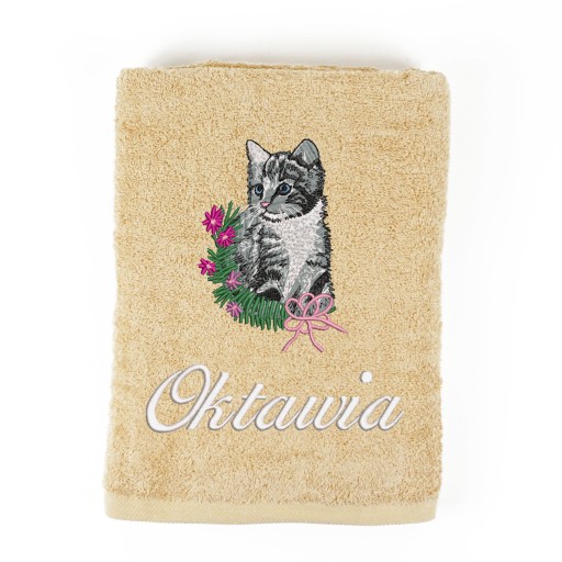 Ręcznik kąpielowy 70x140cm z wyhaftowanym kotem + Twoje imię