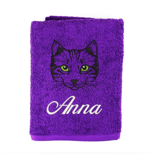 Ręcznik kąpielowy 70x140cm z wyhaftowaną głową kota + Twoje imię