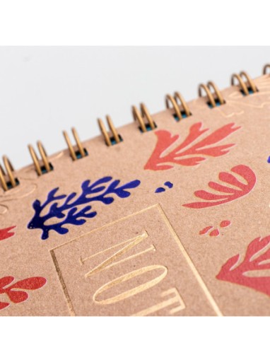 Obszerny, 192-stronicowy notes ekologiczny na spirali, łączy w sobie okładkę z tektury 650g z recyklingu z papierem kremowym 70g.