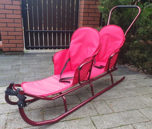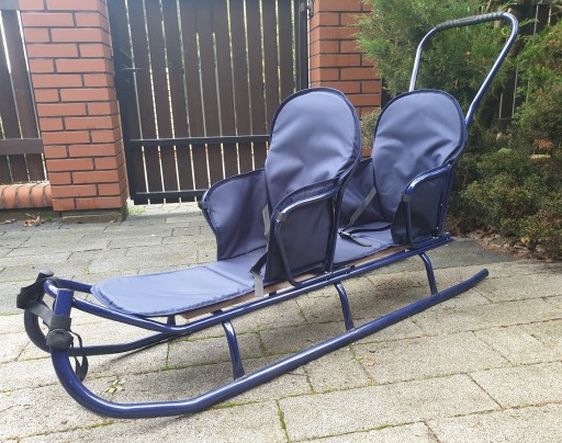 ДВОЙНЫЕ ТАНДЕМНЫЕ САНКИ ПРЕМИУМ + ПУШЕР + МАТРАС + РЕМЕНЬ