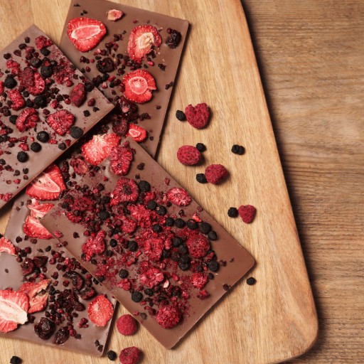 🍫Dla miłośników owoców: Czekolada z liofilizowanymi owocami jest idealna dla tych, którym smak owoców kojarzy się z cennymi składnikami odżywczymi i korzyściami zdrowotnymi.