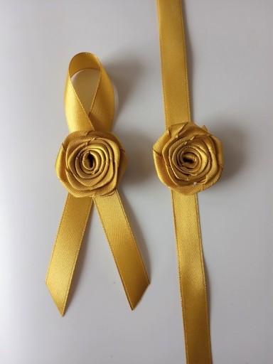 Ozdoba wykonana jest z satynowej różyczki i wstążki.