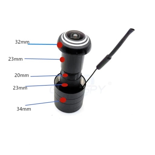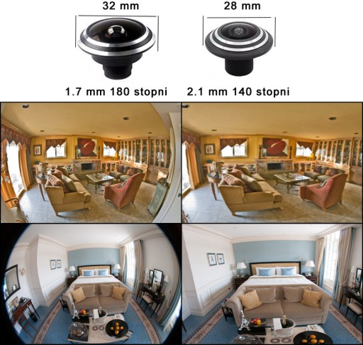 - średnica 32mm, ogniskowa 1,7mm, kąt widzenia 180° (tzw. rybie oko)