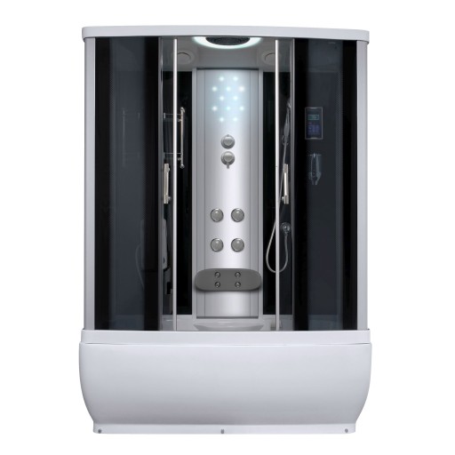 - Wyposażenie: Siedzisko zintegrowane, radio FM, wentylator, oświetlenie, półka szklana, wylewka wannowa, dozowniki do mydła, masażer stóp, deszczownica, słuchawka prysznicowa, wąż prysznicowy