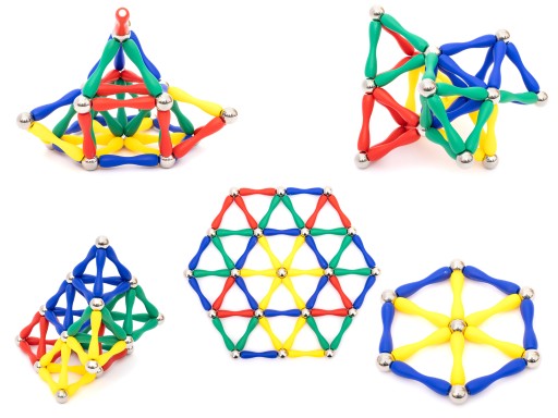 ➤wykorzystane jako pomoc naukowa uczą geometrii, w połączeniu z elementami innych zestawów pomogą w nauce matematyki, fizyki czy chemii (klocki kleją się do tablic magnetycznych