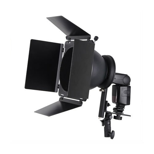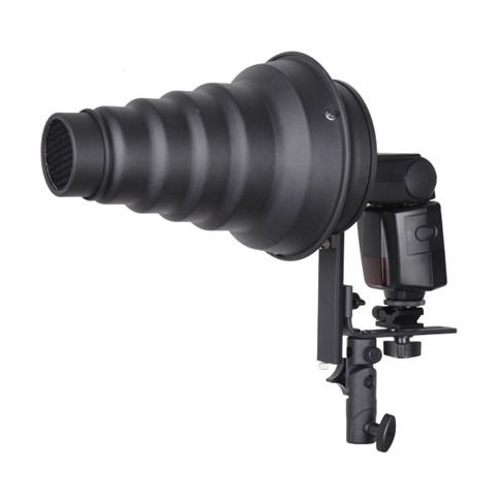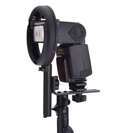 Uchwyt pozwala na używanie akcesoriów fotograficznych np. softboxy, strumienice, czaszy, beauty, dish-ów itp. z mocowaniem typu Bowens z dowolną lampą błyskową z ruchomą głowicą.