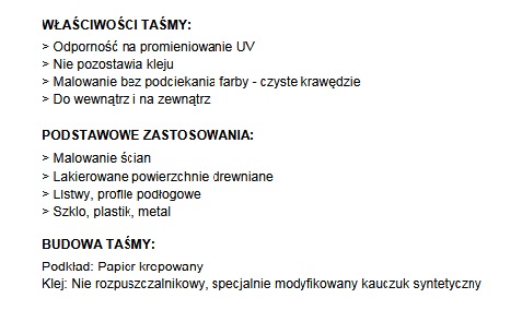 Jest to Profesjonalna Taśma Malarska specjalnie przygotowana do długiego przebywania na powierzchni i łatwego usuwania bez uszkodzenia podłoża oraz pozostawiania śladów kleju. Jest to najlepszy wybór zarówno dla profesjonalisty, jak i dla indywidualnego użytkownika.