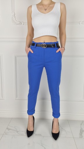 Elastyczne spodnie cygaretki, posiadają średni stan. Świetne połączeniu ze szpilkami, dzięki swojej uniwersalności, pasują niemal do każdej stylizacji. Elastyczny materiał podkreśla kobiecą sylwetkę. Spodnie są dopasowane, rozciągają się. Podkreśl swoje kobiece kształty! Spraw, by Twój codzienny Look był niepowtarzalny.