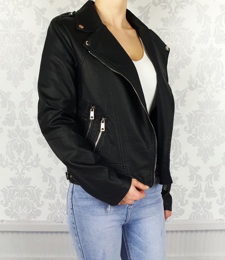 Klasyczna kurtka RAMONESKA. Model taliowany, sięgający do pasa. Uszyta z miękkiej ekoskóry doskonale imitującego naturalną skórę, półmatowa (nie świecąca i nie blado matowa). Materiał miękki (nie jest sztywny i nie piankowy). Zapinana jest na srebrny zamek . Po bokach dwie kieszonki zapinane na suwaki. Kurtka podszyta jest czarną podszewką. Można ją wykorzystać w każdej stylizacji, zarówno do klasycznych jeansów i białego T-shirtu na codzienne wyjścia, jak i do kobiecych sukienek dodając im rockowego charakteru. Jest to zdecydowany must have w każdej garderobie!