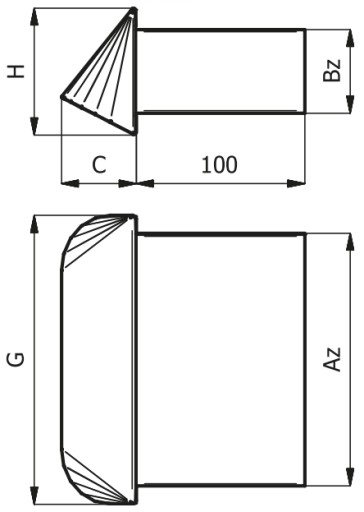- Długość króćca czerpni: 100 mm