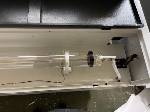 - Pompka wodna służąca do chłodzenia tuby laserowej, zabezpiecza układ przed przegrzaniem.
