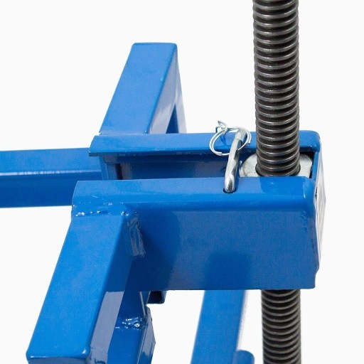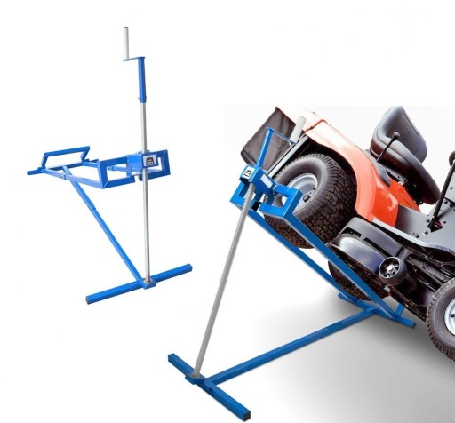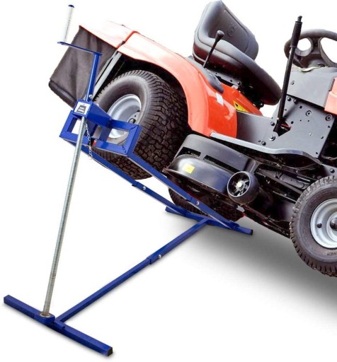 Profesjonalny podnośnik do podnoszenia traktorka, kosiarki lub quada w celu naprawy lub czyszczenia. Może służyć również jako pomoc przy odkręcaniu noży w kosiarce.