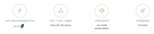 - Maks. wydajność w trybie wyciągu: 715 m3/h