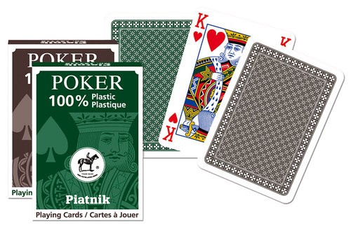 Najwyższej jakości, w 100% plastikowe, karty do pokera. Na awersach powiększone indeksy. Talia składa się z 55 kart o pokerowym wymiarze 63 x 88 mm.