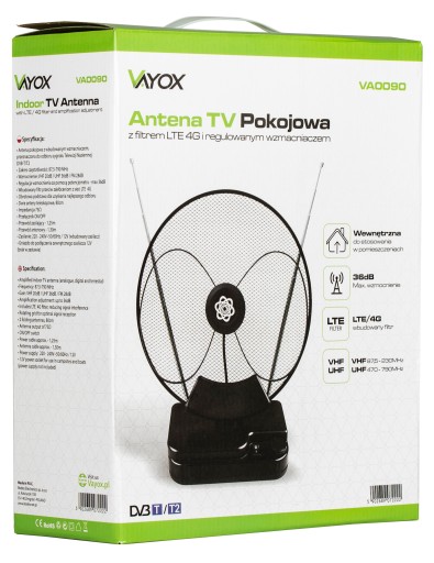 ANTENA TV POKOJOWA AKTYWNA DVB-T2 MOCNA 4K VAYOX