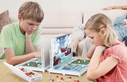 Klasyczna gra planszowa dla dwóch graczy podczas której stara się odgadnąć pozycję floty przeciwnika, zdefiniowaną przez układ współrzędnych kartezjańskich. Opakowanie zawiera 2 perforowane tablice, kołeczki w różnych kształtach i dodatkowe akcesoria.