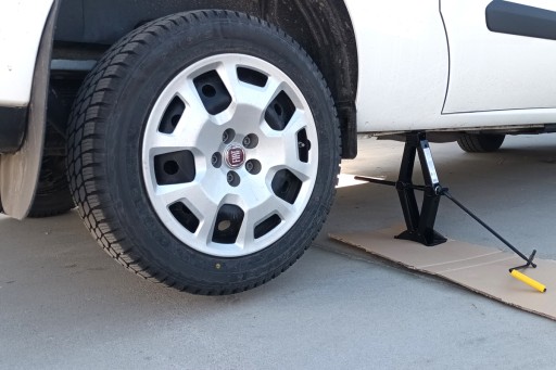 Solidny podnośnik samochodowy trapezowy o udźwigu maksymalnym 2 tony z porządną gumą zabezpieczającą przed rysowaniem i gięciem.