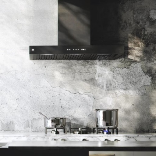 Okap w kształcie odwróconej litery T to idealna propozycja do wnętrz w stylu loftowym, modern i skandi.
