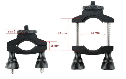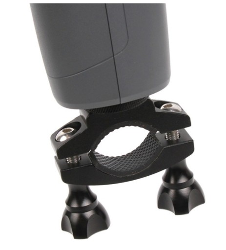 Wysokiej jakości uchwyt aluminiowy, pasuje do wszystkich najbardziej popularnych rowerów - do profili okrągłych o średnicy od 18 do 33 mm - lub przedmiotach podłużnych o przekroju aż do 43 mm.