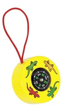 Kompas wykonany jest z drewna. Posiada igłę magnetyczną zabiezpieczoną odpornym na uderzenia szkiełkiem. Dodatkowo kompas zakończony jest pętelką ze sznurka, dzięki któremu dziecko może zawiesić zabawkę np. na rączce lub przy spodniach.